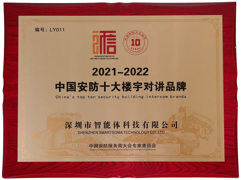 | 熱烈慶祝榮獲中國安防十大樓宇對講品牌 |